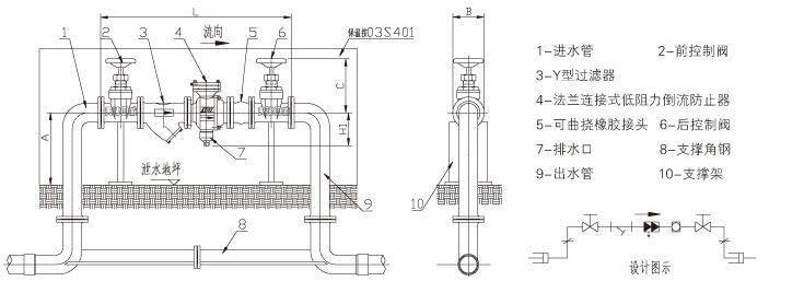 (5) 倒流防止器前(后) 建議設置伸縮節或可曲撓橡膠接頭,以便拆卸倒流防止器。